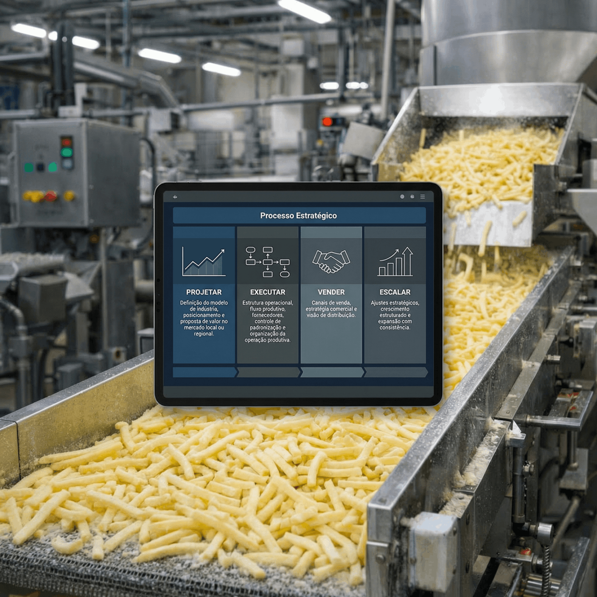 Em apenas 1 dia, você vai sair com o plano estruturado para montar sua própria Indústria de Batata Pré-Frita Congelada profissional e escalável.